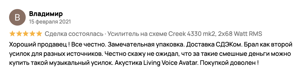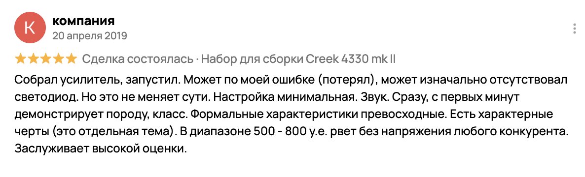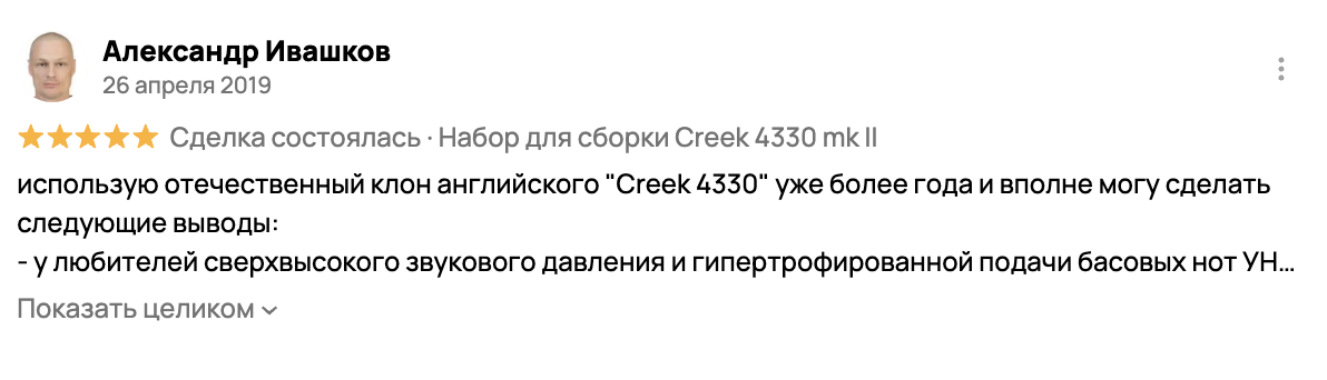 - Бас: Плотный и собранный. Несмотря на скромную мощность, Creek 4330 mkII легко справляется даже со сложной акустикой.